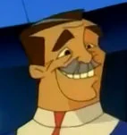 He is a human male with tan skin, brown hair and eyebrows, and a gray mustache.